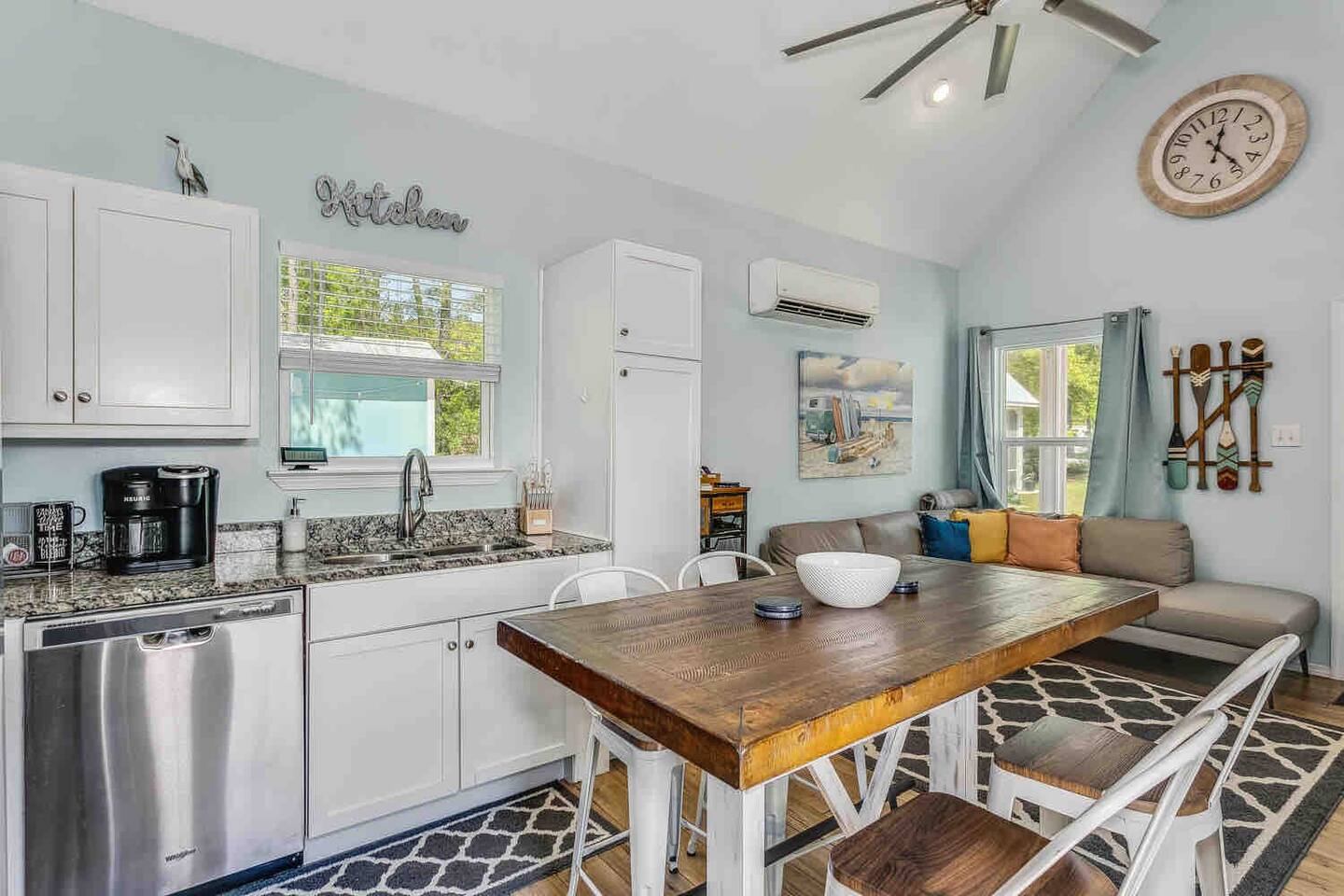 Spacious & Pet-Friendly Tiny Home Near Bon Secour River This newly updated tiny home feels surprisingly spacious with its 18-foot ceilings and thoughtfully designed layout. The master bedroom features a king-size bed, while the full bathroom includes a full-sized washer and dryer for added convenience. The kitchen is equipped with full-sized stainless steel appliances and everything needed to prepare and serve meals. In the living room, you’ll find a queen-size Murphy bed with a plush memory foam mattress, providing extra sleeping space without sacrificing comfort. Perfect for Pets! This home is pet-friendly and features an adorable, fully enclosed backyard with a 4-foot picket fence—a perfect space for your furry family members to enjoy their vacation, too! Maximum of 2 dogs allowed. contact host for exception to pet policy for more than 2 dogs. Prime Location – Close to Beaches, Attractions & Sportsplex Located in a quiet, rural setting, this home offers the best of both worlds—peaceful surroundings while being close to everything: ✔ 12 miles to Gulf Shores beaches & The Hangout ✔ 10 miles to OWA, Tropic Falls Water Park & Tanger Outlets in Foley, AL ✔ 7 miles to Gulf Shores Sportsplex – perfect for families visiting for tournaments A Fisherman’s Dream! Just one block from the Bon Secour River, this location is ideal for fishing and boating. A free boat launch is available at Aquila Fish Market, just a 2-minute drive away, where you can also fish right off the shore. If you don’t catch your dinner, no worries! Two fresh seafood markets are just three blocks away, offering the freshest fish and shrimp, perfect for grilling on the charcoal grill. Prefer to dine out? Tin Top Restaurant is right down the street, serving some of the best seafood in the area with live music on select nights. Additional House Rules & Policies: • Pet Policy: Max 2 dogs (no other pets). Unreported pets will incur a $100 fine. (Additional dogs may be allowed on a case-by-case basis, for an extra fee) • Guest Policy: This home sleeps a maximum of 4 guests. Daytime visitors are welcome (up to 6 people total), but all non-overnight guests must leave by 10 PM. A $50 fine per person applies for unregistered overnight guests, and failure to comply may result in immediate removal without refund. All guests must be registered in advance. • Security: A Ring video doorbell is located at the entrance of the screened porch, facing the parking lot. It is motion-activated and records audio & video. • Cancellation Policy: We strongly recommend travel insurance as we cannot issue refunds for travel delays, illness, or weather. Refunds are only available per our posted cancellation policy. Snowbirds Welcome! Planning a 30+ day stay? Contact us for special Snowbird rates! Come relax, unwind, and enjoy everything this charming home has to offer!