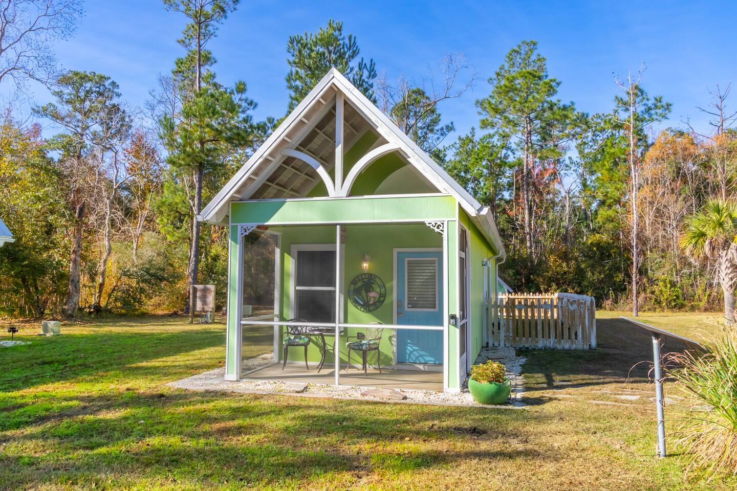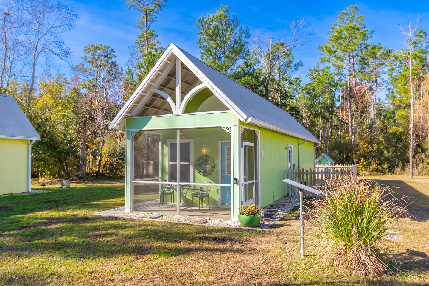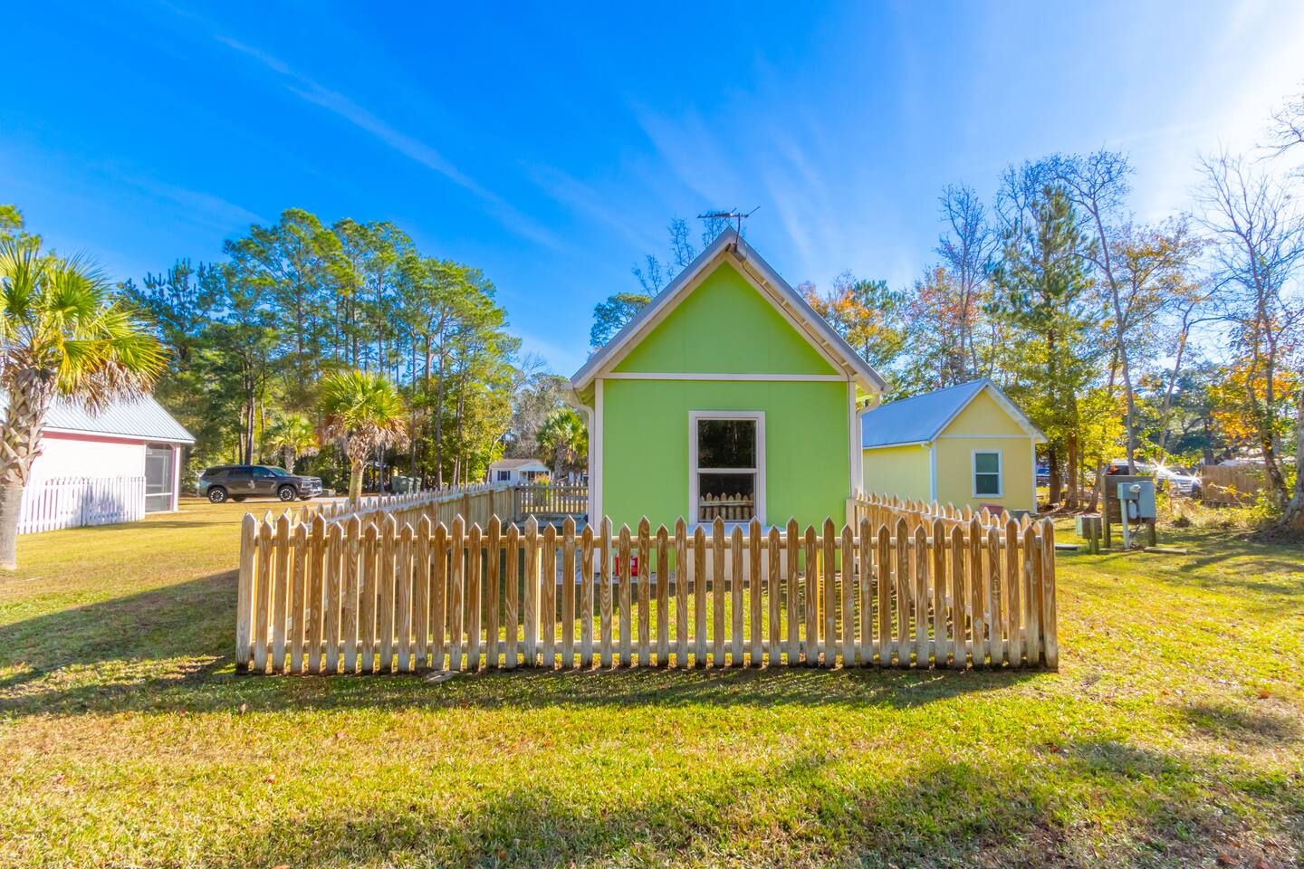 The Key Lime Cottage Tiny House sits in the charming fishing village of Bon Secour, AL—just 11 miles from the beach and close to Foley and Gulf Shores. Enjoy coastal fun by day and return to a quiet, relaxing retreat at night. This pet-friendly home features a fully fenced yard perfect for dogs or kids. Thoughtfully designed for comfort, it’s an ideal spot to unwind and enjoy the peaceful Gulf