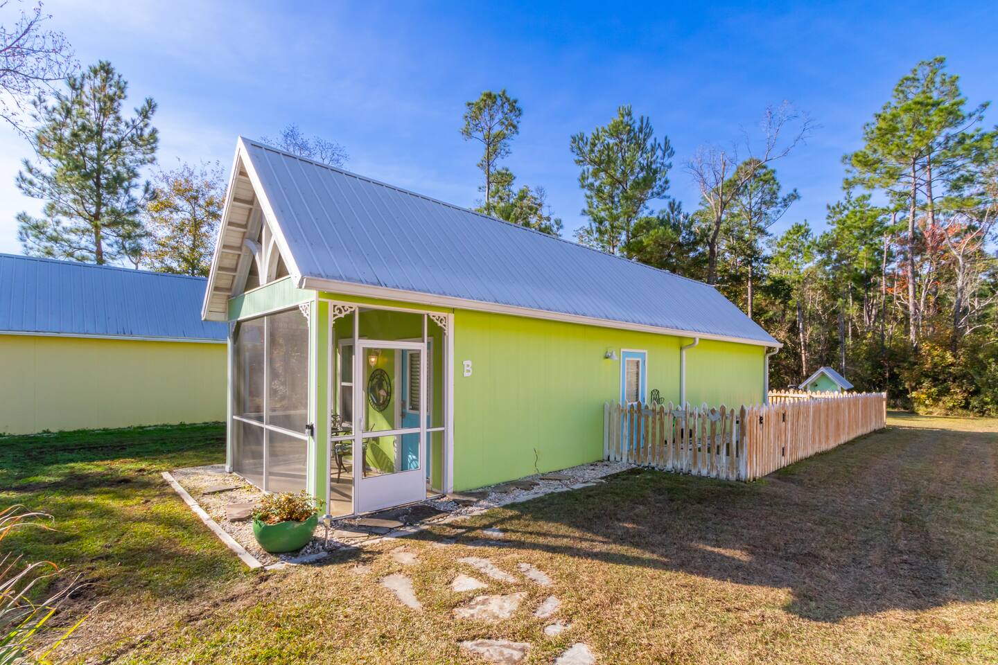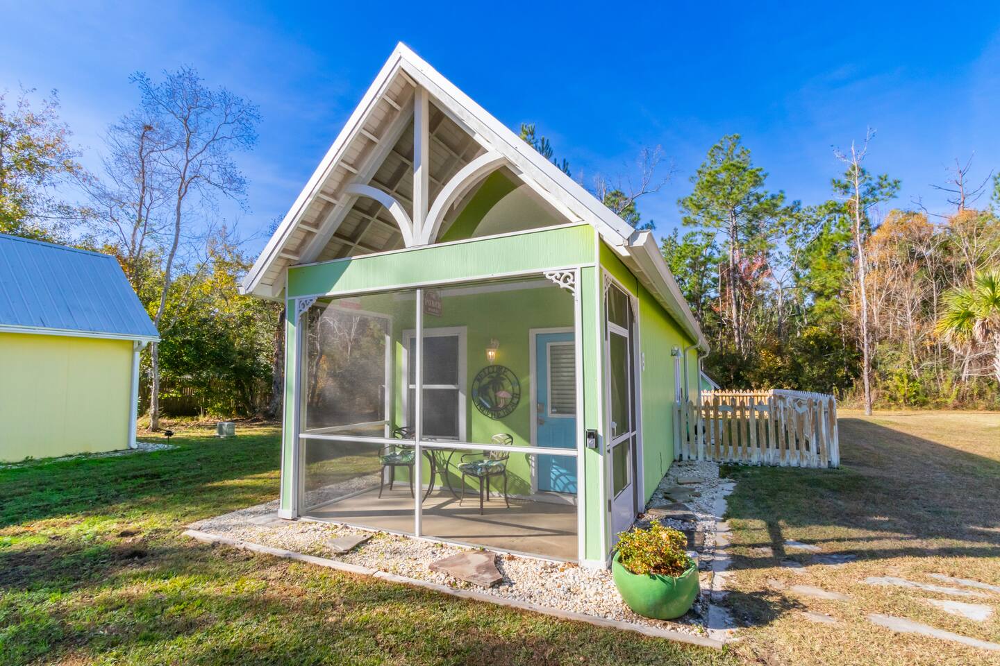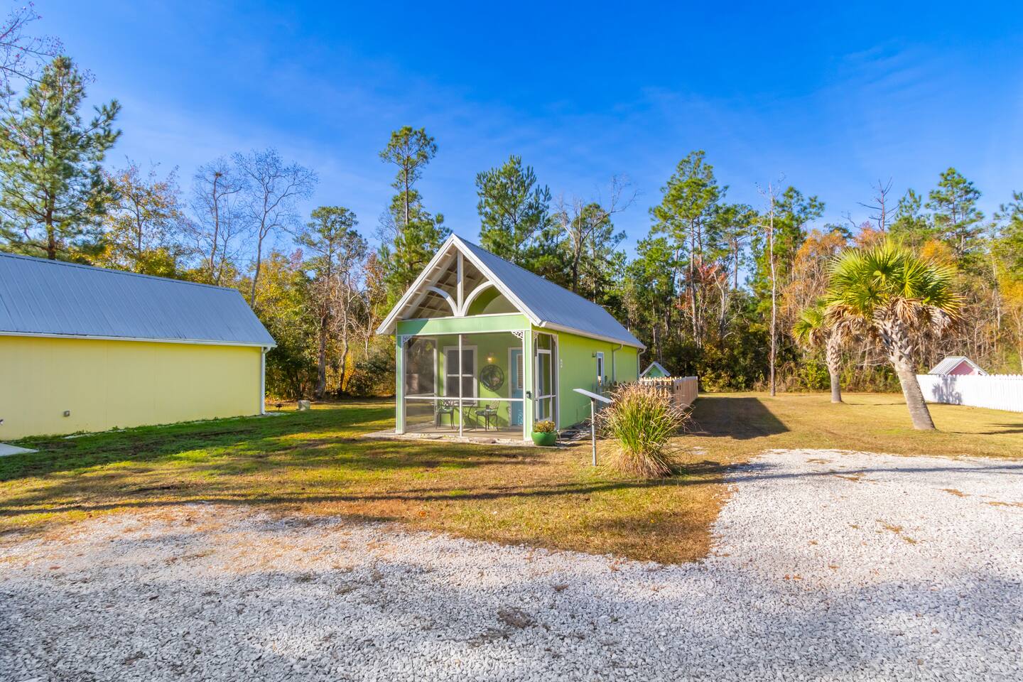 The Key Lime Cottage Tiny House sits in the charming fishing village of Bon Secour, AL—just 11 miles from the beach and close to Foley and Gulf Shores. Enjoy coastal fun by day and return to a quiet, relaxing retreat at night. This pet-friendly home features a fully fenced yard perfect for dogs or kids. Thoughtfully designed for comfort, it’s an ideal spot to unwind and enjoy the peaceful Gulf