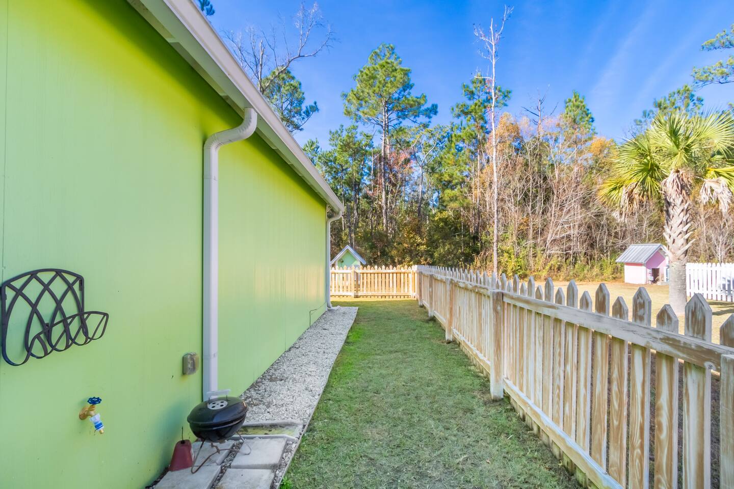 Welcome to The Key Lime Cottage! This adorable, fully remodeled tiny home sits just 11 miles from the beautiful white-sand beaches of Gulf Shores and Orange Beach. Perfectly positioned between Gulf Shores and Foley, it keeps you close to all the local hot spots while providing a peaceful retreat at the end of the day. This pet-friendly home features a fully fenced backyard—great for dogs to play safely. Inside, you’ll find a king-size bed in the master bedroom and a queen-size convertible sofa in the living room. The sofa isn’t a pull-out, so no uncomfortable metal bars—just cozy comfort! Need more space? You can also rent the tiny home next door, allowing up to 8 guests between both properties. Airbnb link: https://www.airbnb.com/l/yLZbufPC Remodeled in November 2025 with comfort in mind, the cottage is fully furnished and stocked with everything you need: cookware, dishes, linens, travel-size shampoo, bar soap, hand soap, dish soap, trash bags, and toilet paper. Located just a couple of blocks from the Bon Secour River, you’ll be near a free boat launch (¼ mile away) and two local fish markets. Fishermen are welcome—there’s room for most boats in the parking area. Come relax, explore, and enjoy your stay at The Key Lime Cottage!